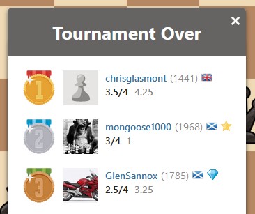 DReidGMCC 1-0 chrisglasmont: https://www.chess.com/game/live/37135343709